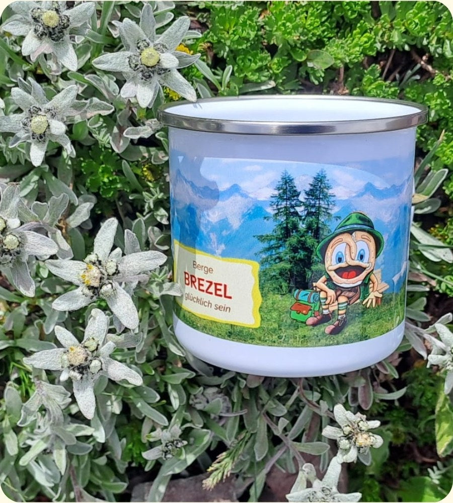 Und dann, Wochen später im Büro, Nieselregen an den Fensterscheiben … da genügt ein Blick auf den grinsenden BREZLING® auf deiner Wandertasse, und du bist wieder dort – mit Bergluft in der Nase, Ruhe im Herzen und Weite im Kopf.