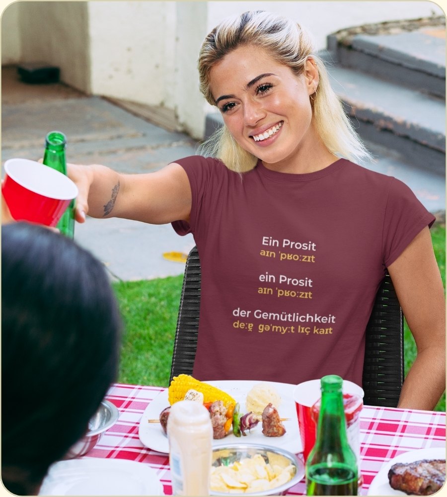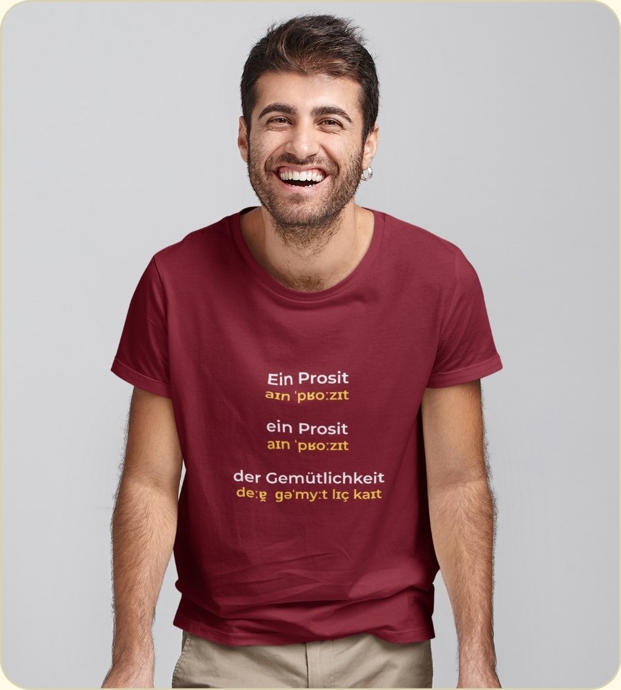 T-Shirt "Ein Prosit der Gemütlichkeit" mit internationaler Lautschrift - bordeaux