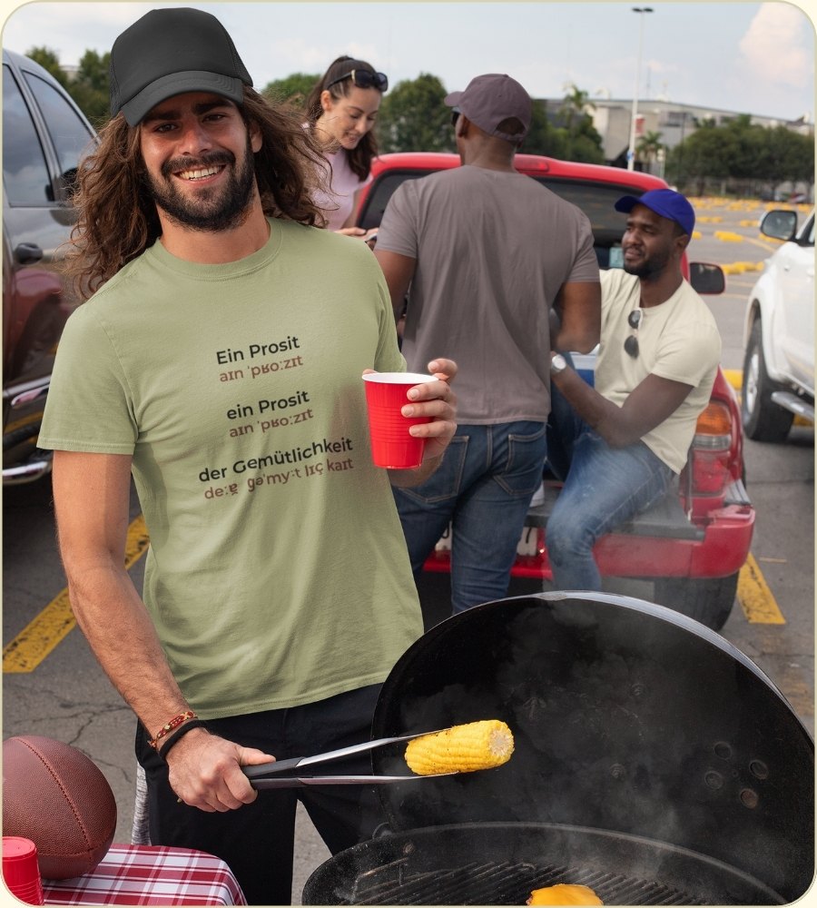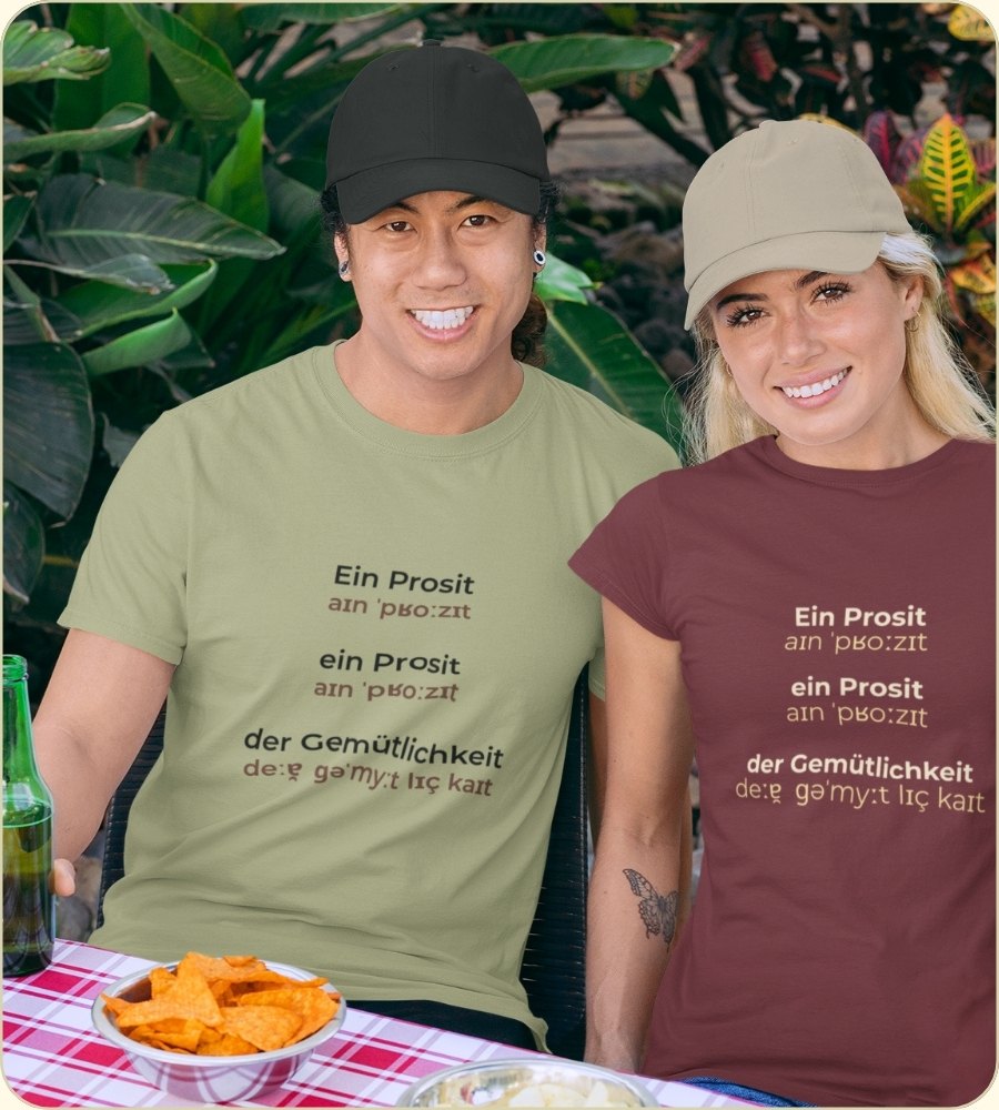 Du kennst die Szene: Die ersten Takte erklingen, alle greifen zum Maßkrug und das ganze Festzelt stimmt die Bayerische Festhymne an. Mit der Lautschrift auf diesem Shirt fällt das Mitsingen auch internationalen Gästen leicht – von den ersten Silben an klingt’s gscheid.